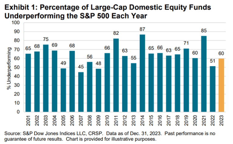 La mayoría de los fondos de acciones estadounidenses de gran capitalización, en promedio, han tenido un rendimiento inferior al del S&P 500.