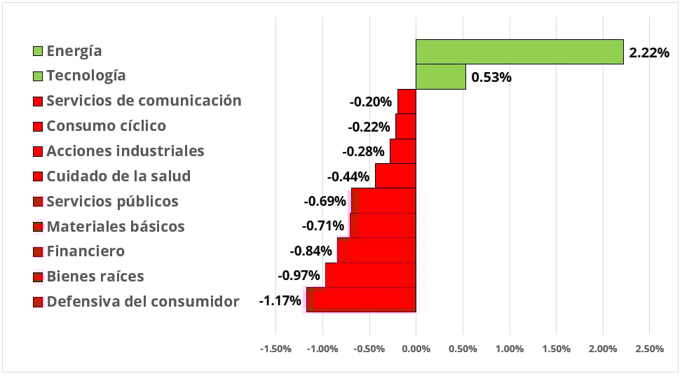El sector de la energía, impulsado por la industria de refinación y comercialización de petróleo y gas, tuvo el mejor rendimiento el día de ayer.