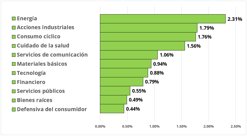 El sector de la energía, impulsado por la industria de perforación de petróleo y gas, tuvo el mejor rendimiento el día de ayer.